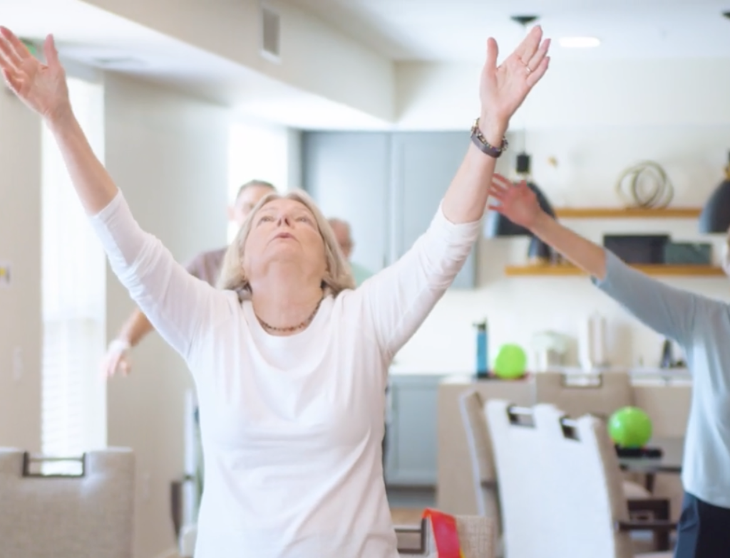 Imagine walking into a bright community room where comforting music plays, chairs are neatly arranged and welcoming, and friendly voices fill the air. A few residents laugh as they test their balance, stretching arms wide with colorful resistance bands. A trainer smiles, offering encouragement: “You’ve got this – strong and steady!”
